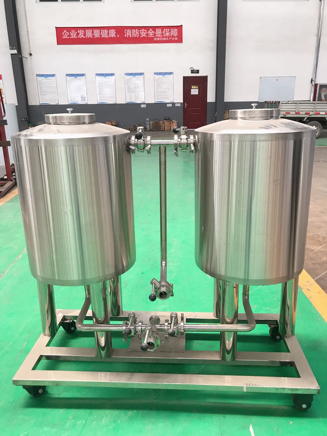 4. 消毒液沖洗,為了保證在冷洗和酸洗情況下進一步滿足設備、管道的無菌條件、往往在后洗結束后再用合適濃度的消毒劑水溶液再沖洗一次。這種消毒劑最好在沖洗后,其殘留液不會對產(chǎn)品產(chǎn)生任何影響,對設備也沒有強烈的腐蝕作用,如過氧乙酸、二氧化氯、過氧化氫等,這樣就不必再用無菌水進行重復沖洗了。近代啤酒釀造為了保證產(chǎn)品質(zhì)量和食品的安全性,強烈反對使用甲醛之類的殺菌劑對大罐、清酒罐和啤酒設備管道進行殺菌處理,因為甲醛殘留會造成啤酒的口感和飲用安全性出現(xiàn)問題。