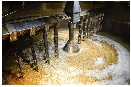 糖化過(guò)濾槽形式糖化鍋攪拌的主要有兩種形式:一是采用具有排糟功能的攪拌槳,必要時(shí)還可以設(shè)置雙層槳。這種形式的攪拌槳混合和固液懸浮功能良好,能夠保證物料各點(diǎn)溫度基本一致,但是這種形式的攪拌槳舍棄了耕糟功能,在需要耕糟的情景下弱點(diǎn)必現(xiàn)。